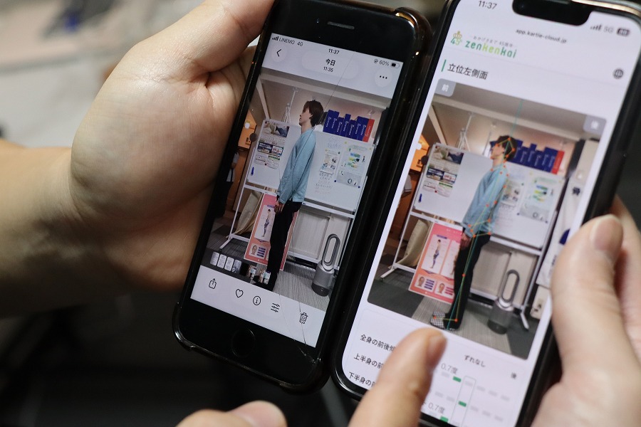 施術が終わったあと、施術前の様子と見比べると、姿勢が良くなっている様子が見て取れました。