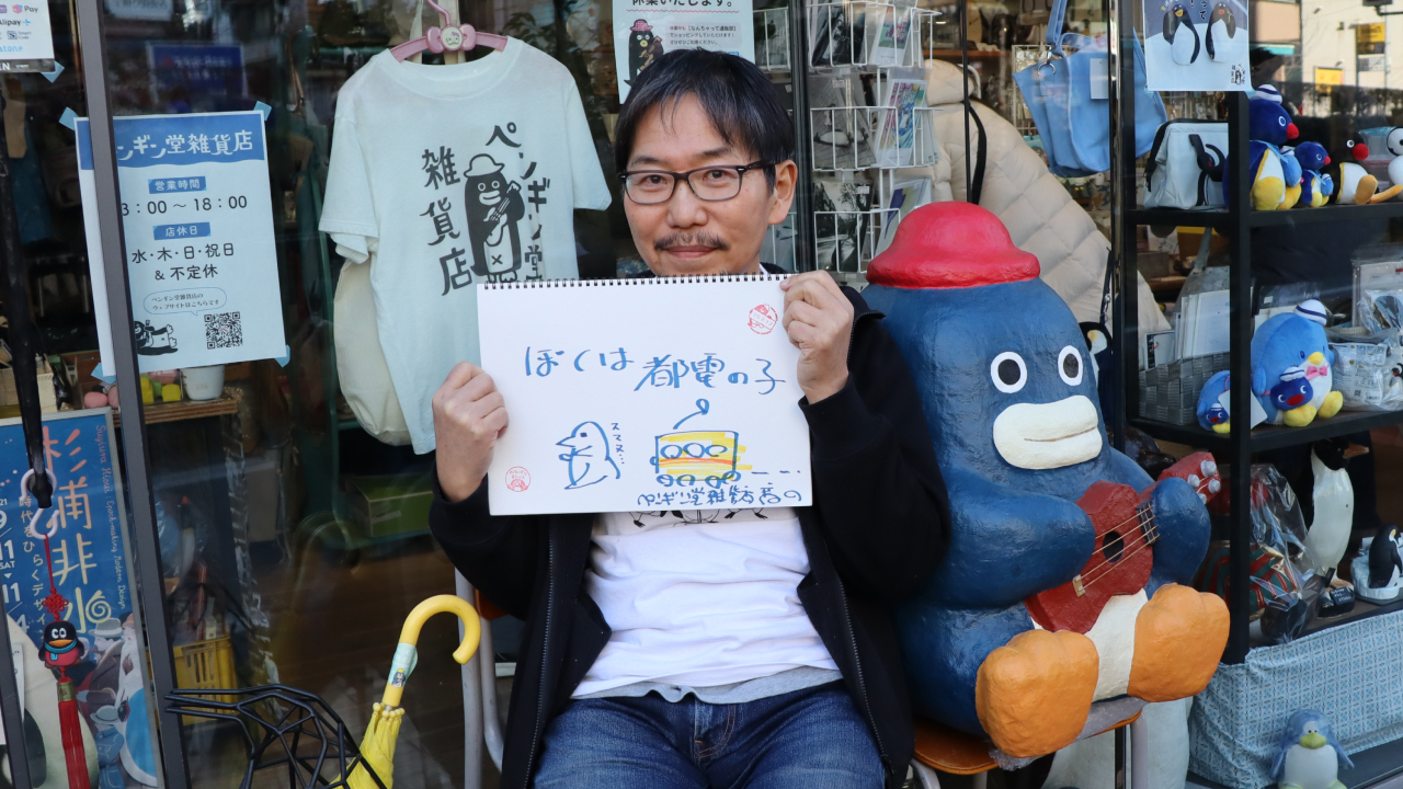 『ペンギン堂雑貨店』は、大好きな都電の目の前で、大好きなペンギンに囲まれて、色々なお客さんと楽しくお話ができて、自分にとって極楽のような仕事場です。