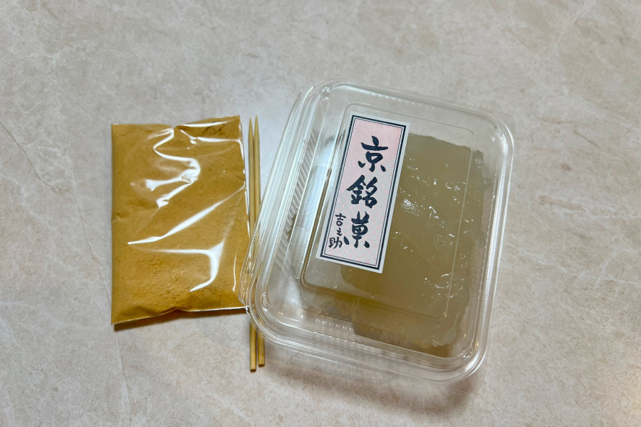 わらび餅にはきなこが付いています!