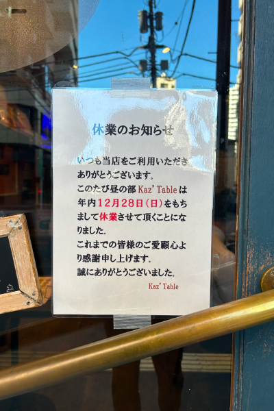 南大塚『Ka’z Table』が12/28(日)をもって休業するらしい…