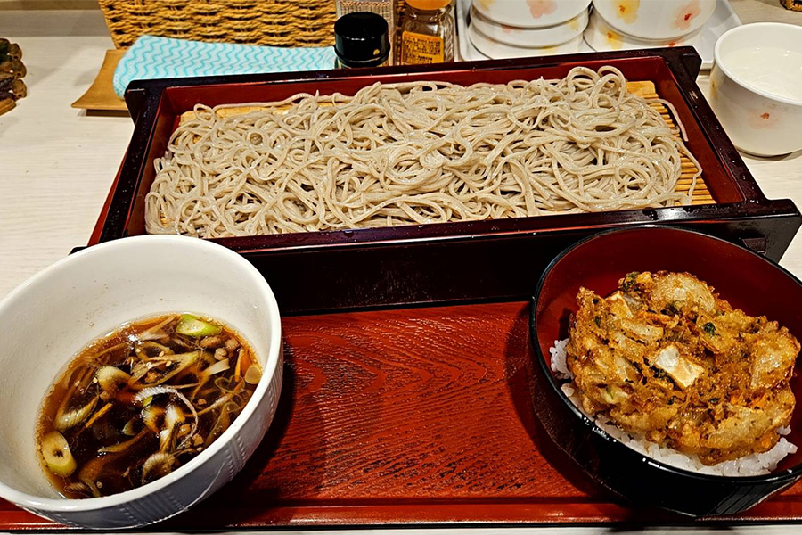 写真は、一番人気の『きざみ鴨せいろ』と『かき揚げ丼 小』です。