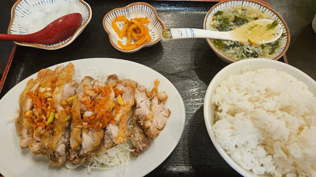 油淋鶏にかかっている甘辛いソースが美味しい。