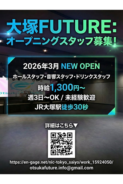 この度、大塚に新しいライブハウスの『大塚FUTURE』がオープンするとのことでお知らせします!