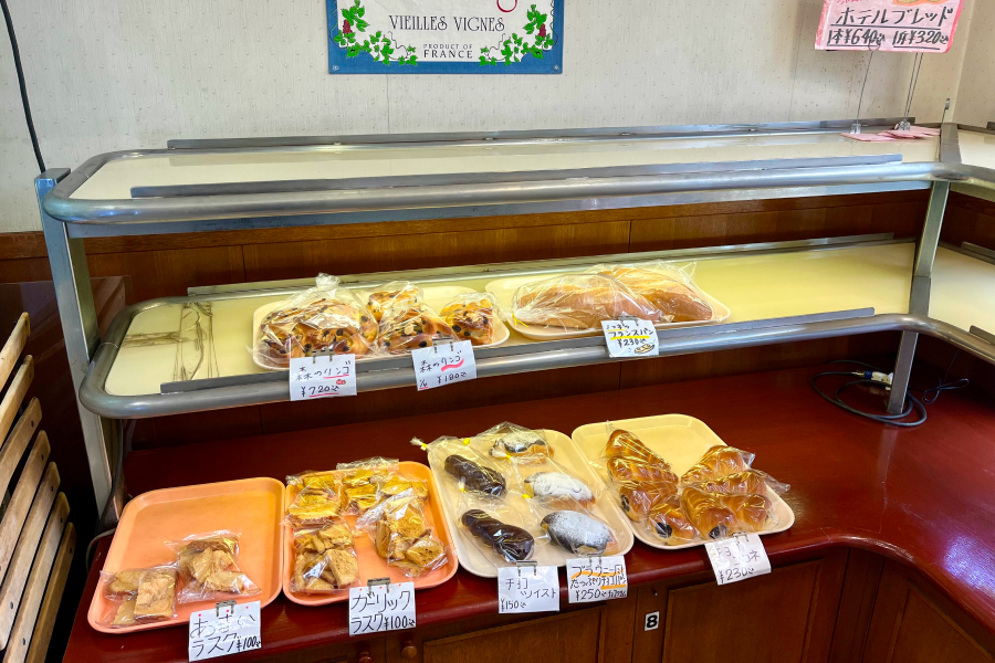 にも関わらずこちらのパン屋は品揃えが豊富なもんで、数多くのパンが並んでいました。