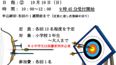 お子さんとご一緒に!10/5・10/19はアーチェリー体験会